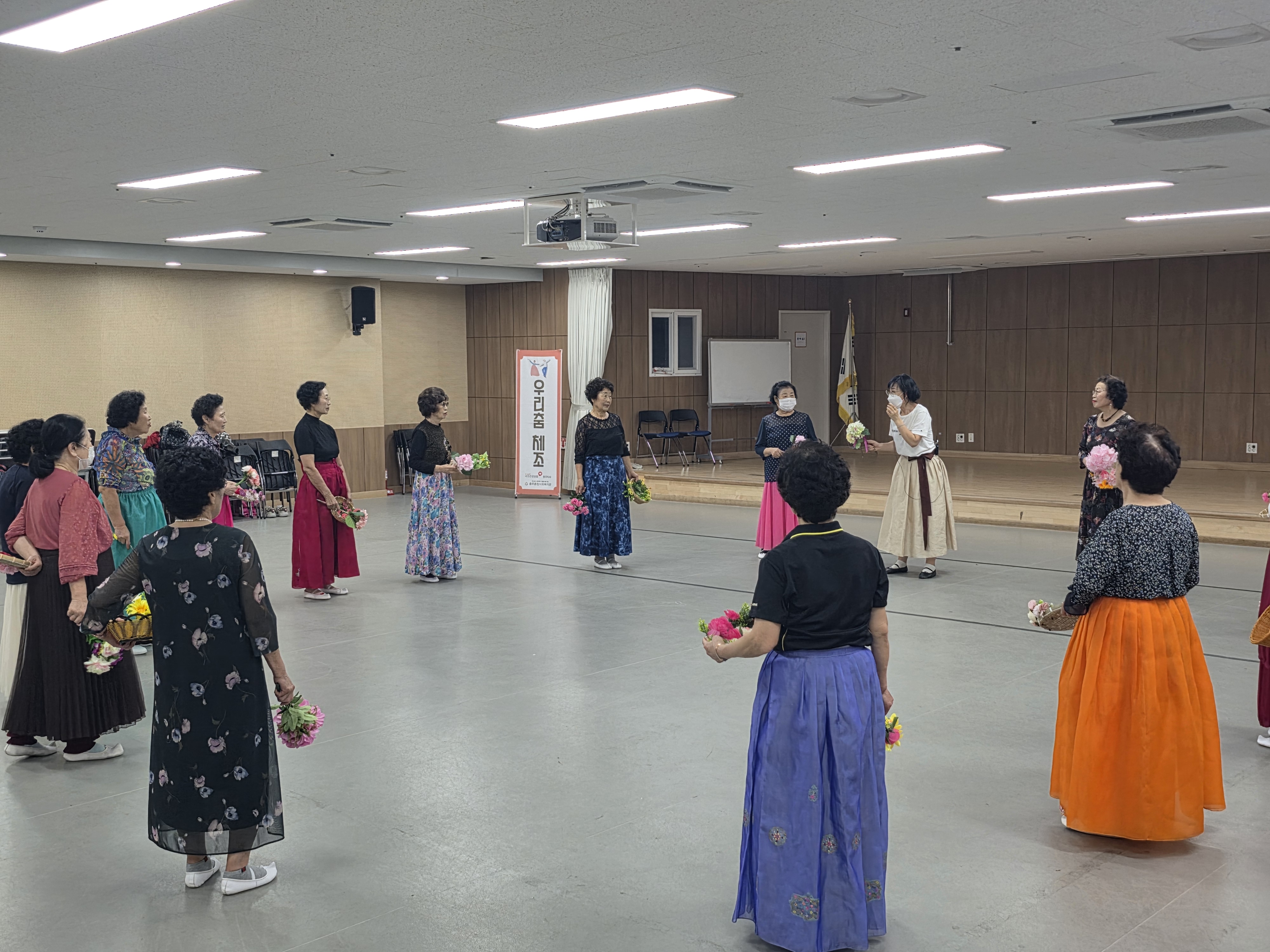 어르신의 신체적·정서적 건강 증진을 위한 여가 시간을 제공하기 위해 건강보험관리공단 충주지사의 전문 강사를 파견 받아 우리춤체조 교실을 진행하였습니다.